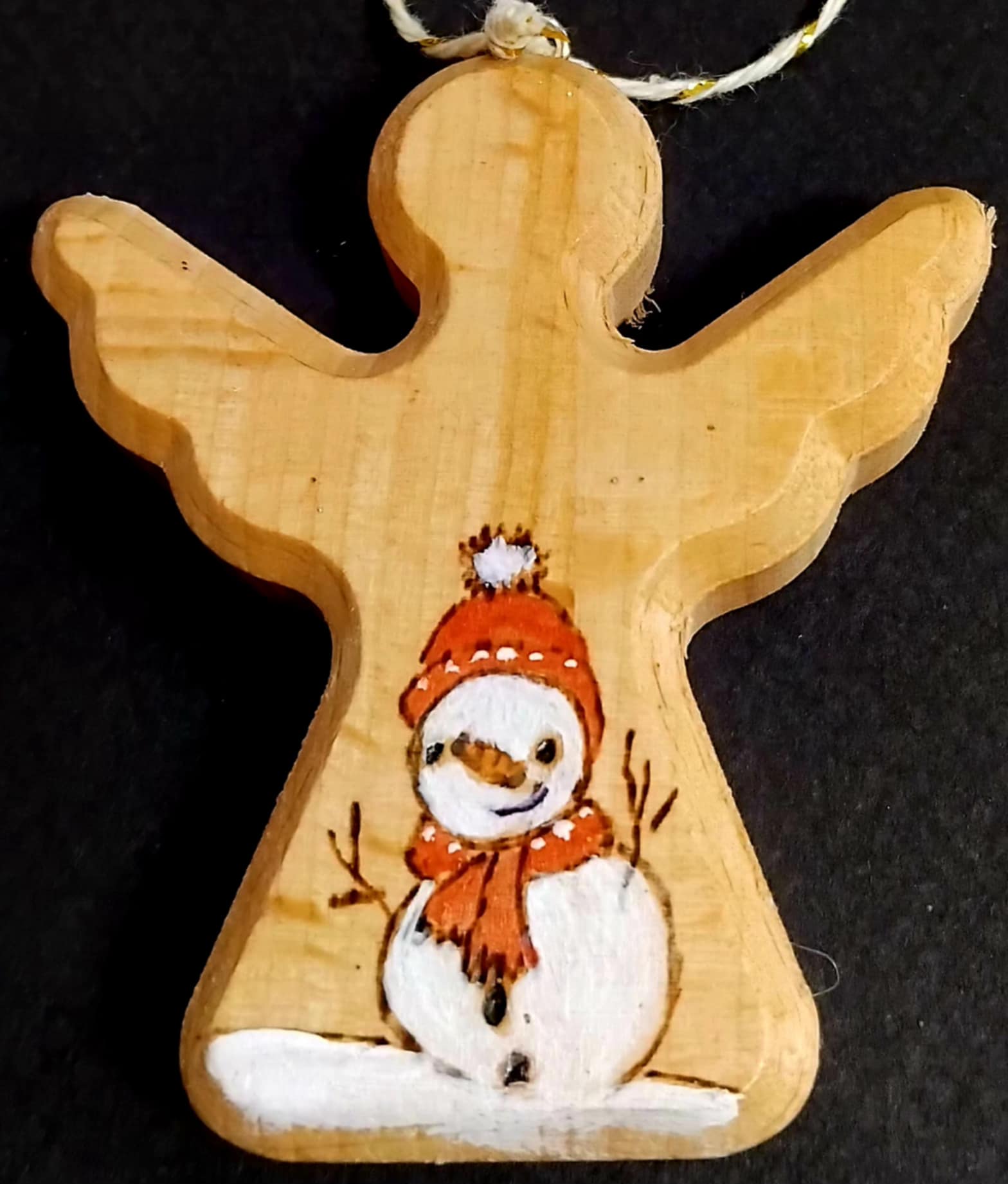 Découvrez cette pièce unique représentant un ange qui apportera une touche chaleureuse à votre décoration de Noël. Il est peint avec soin d'un motif représentant un bonhomme de neige souriant de facon à amuser les plus petits.